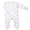 This adorable, classic style footie made of ultra-soft Pima cotton will be a favorite for both you and baby. Features zipper closure for easy changes and sweet picot trim details.